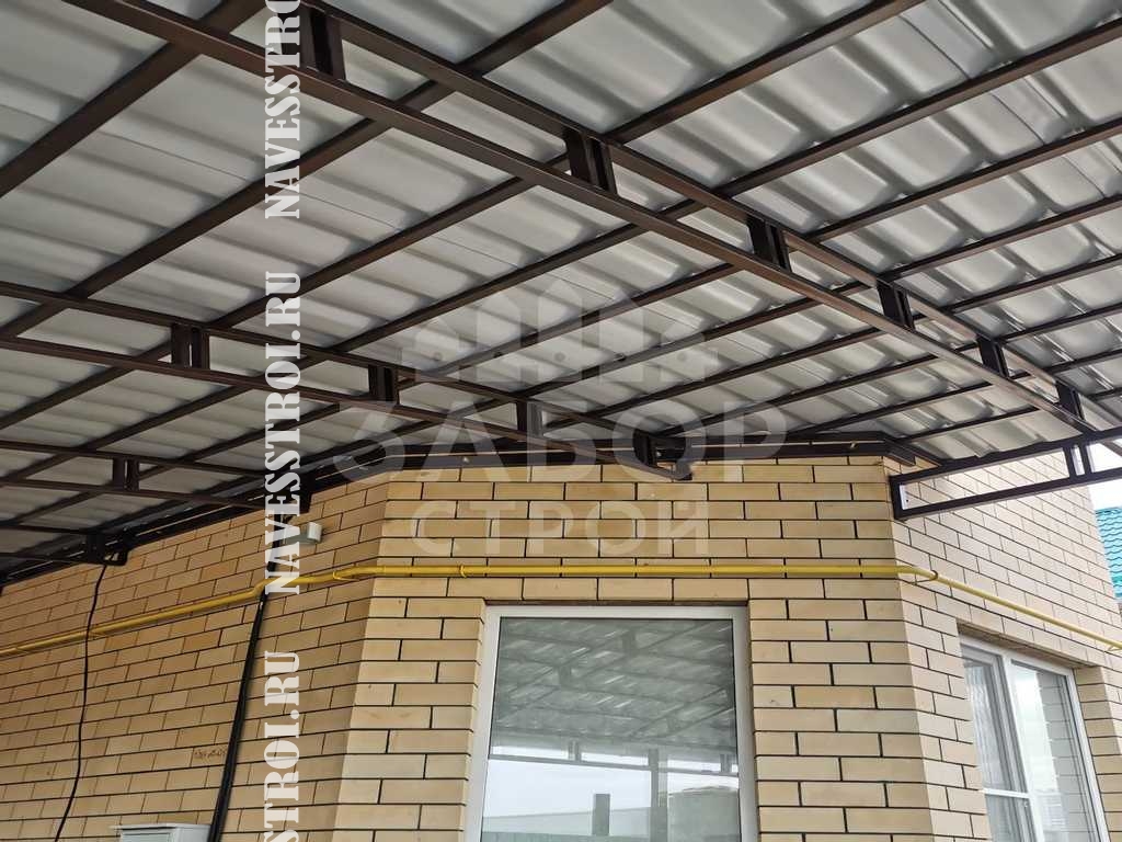 Характеристики металлического профиля навеса: столбы 80х80х3мм.